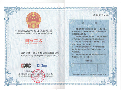 中國(guó)清潔清洗行業(yè)等級(jí)資質(zhì) 國(guó)家二級(jí)